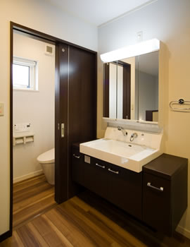 暖房には基礎を蓄熱に使うスラブヒーターを設け 少ない熱量で長時間建物全体を温めることが可能な構造になっています。 結露の心配もなく、冬は暖かく、夏は涼しく、少ないエネルギーで快適に過ごせる住宅です。